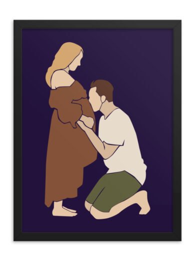 Pregnant Mother & Dad Standing on Knee! Framed poster